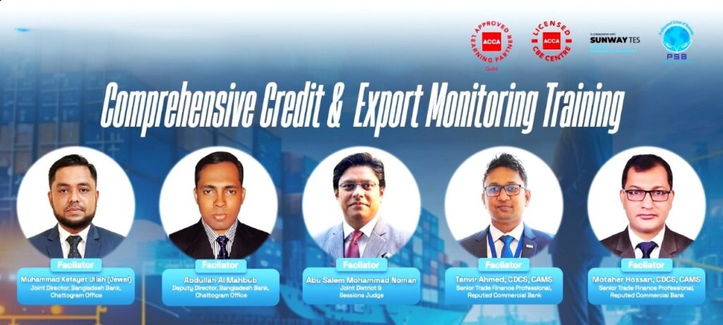 বন্দরনগরী চট্টগ্রামে ACCA প্রেগ্রাম পরিচালনাকারী একমাত্র প্রতিষ্ঠান “দ্য প্রফেশনাল স্কুল অব বিজনেস (PSB) গত ৭–৮ নভেম্বর ২০২৫ তারিখে “Comprehensive Credit & Export Monitoring Training” শীর্ষক দুই দিনব্যাপী অনলাইন প্রশিক্ষণ কর্মসূচি সফলভাবে সম্পন্ন করেছে। ব্যাংক কর্মকর্তাদের ক্রেডিট অপারেশন, নিয়ন্ত্রক সংস্থার কমপ্লায়েন্স, রপ্তানি লেনদেন পর্যবেক্ষণ এবং আইনি প্রক্রিয়া সম্পর্কিত পেশাগত দক্ষতা বৃদ্ধি এই প্রশিক্ষণের মূল উদ্দেশ্য ছিল। প্রশিক্ষণে ক্রেডিট ডকুমেন্টেশন ও শ্রেণীকরণ, ঋণ পুনরুদ্ধার প্রক্রিয়া, অর্থঋণ আদালতের কার্যপ্রণালী, রপ্তানি লেনদেনে অনিয়ম সনাক্তকরণ, আন্তর্জাতিক নিষেধাজ্ঞা ঝুঁকি এবং প্রতারণাপূর্ণ শিপমেন্ট চিহ্নিতকরণের মতো প্রাসঙ্গিক ও ব্যবহারিক বিষয়াদি উপস্থাপন করা হয়। এতে অংশগ্রহণকারীরা বাস্তব অভিজ্ঞতার ভিত্তিতে কেস স্টাডি এবং নিয়ন্ত্রক সংস্থার দৃষ্টিভঙ্গি সম্পর্কে গভীর জ্ঞান অর্জন করেন। প্রশিক্ষণ কর্মসূচি পরিচালনা করেন মুহাম্মদ কেফায়েত উল্লাহ (জুয়েল) (যুগ্ম পরিচালক, বাংলাদেশ ব্যাংক, চট্টগ্রাম),আব্দুল্লাহ আল মাহবুব(উপপরিচালক, বাংলাদেশ ব্যাংক, চট্টগ্রাম),আবু সালেম মোহাম্মদ নোমান( যুগ্ম জেলা ও দায়রা জজ),মোতাহের হোসান, CDCS, CAMS (সিনিয়র ট্রেড ফাইন্যান্স প্রফেশনাল) এবং তানভীর আহমেদ, CDCS, CAMS (সিনিয়র ট্রেড অপারেশনস প্রফেশনাল) । অংশগ্রহণকারীরা বলেন, প্রশিক্ষণটি বর্তমান ব্যাংকিং কার্যক্রমে কার্যকর সিদ্ধান্ত গ্রহণ এবং ঝুঁকি ব্যবস্থাপনা সক্ষমতা বৃদ্ধিতে গুরুত্বপূর্ণ ভূমিকা রাখবে। দ্য প্রফেশনাল স্কুল অব বিজনেস (PSB) ভবিষ্যতেও ব্যাংকিং ও আর্থিক খাতের সক্ষমতা উন্নয়নে এ ধরনের পেশাগত প্রশিক্ষণ কার্যক্রম অব্যাহত রাখবে বলে জানান প্রতিষ্ঠান পরিচালক মহিউদ্দিন সুমন।